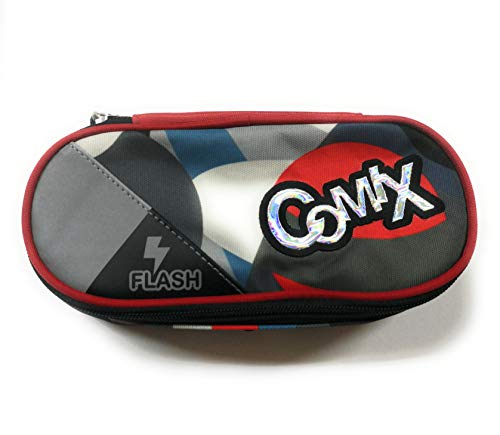 Astuccio Scuola Ovale Comix Flash Organizzato Portapenne Vuoto 22x5x7 Rosso Nero
