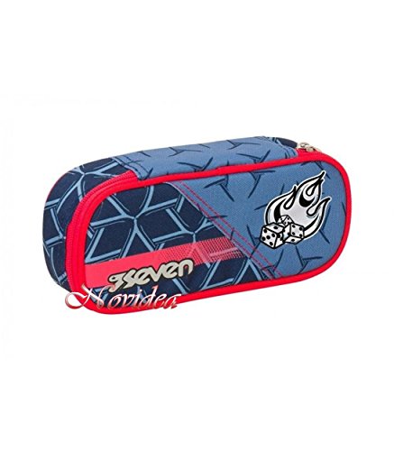 Astuccio scuola ovale 1 zip organizzato seven round plus dice boy blu