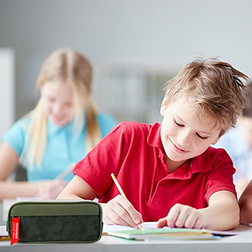 Astuccio Scuola con 3 Scomparti, TOYESS Grande Astucci Penne per Ragazzo & Ragazza, 22CM(Mimetico verde)