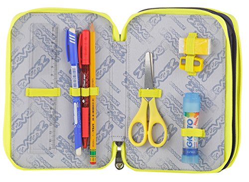 Astuccio 3 Zip Seven, Lucky, Blu Giallo, Con materiale scolastico: 18 pennarelli e 18 pastelli Giotto, penna Tratto Cancellik...