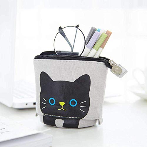 Astuccio Telescopico, NETUME Tela Telescopica Astuccio Gatto Grande per Ragazze Bambini Ragazzi Adolescenti, Pencil Case Pop up per Regalo di Compleanno di Natale, Uso Domestico Scolastico, Grigio