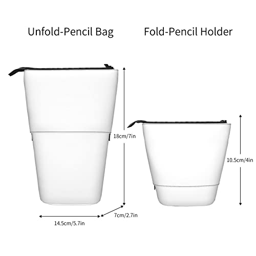 Design telescopico per un facile accesso: Posizionare l'astuccio sulla scrivania, aprire la cerniera e tirare verso il basso le due linguette laterali per trasformarlo in un portamatite di facile accesso. La base robusta offre un buon supporto per stare in piedi, rendendo tutte le vostre forniture visibili e facili da afferrare.