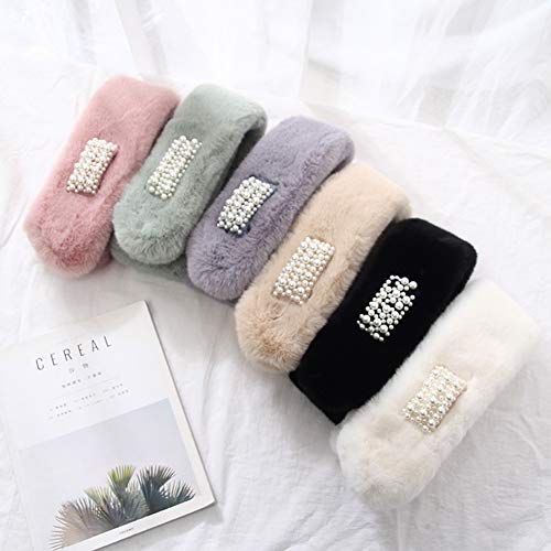 Asudaro Colletto in Pelliccia da Donna Sciarpa Invernale Caldo Sciarpa in Pelliccia di Finta Coniglio Sciarpa da Sposa con perle Staccabile Scaldacollo Corto Carina Nobile e Semplice 80cm