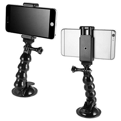 ASUN Supporto a Ventosa, Supporto per Auto Supporto Flessibile Regolabile a Collo di Cigno per Estensione Magica con Staffa di Montaggio per Telefono per GoPro Hero, YI, SJ6000, iPhone e Smart Phone