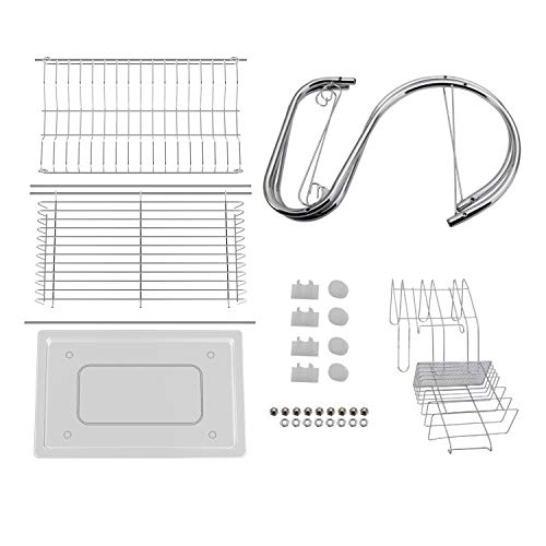 Supporto di supporto: 2 pezzi di supporto a forma di S su entrambi i lati, 0,5 pollici di spessore ha una grande capacità di carico del peso Il design a 2 livelli offre spazio sufficiente per piatti, ciotole, piatti, utensili, bicchieri, posate e tazze, supporto per tazza laterale perfetto per forchette cucchiai, coperchio per pentole e altre posate.