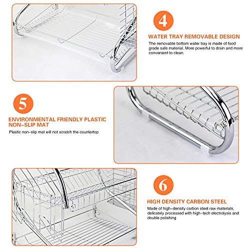 Scolapiatti multifunzionale: ben organizzato scodelle, piatti, forchette, cucchiai, bacchette e altri utensili da cucina in una stessa unità.L'acciaio inossidabile di alta qualità previene ruggine, corrosione, acidi e danni alcalini. mantenere una lunga durata.
