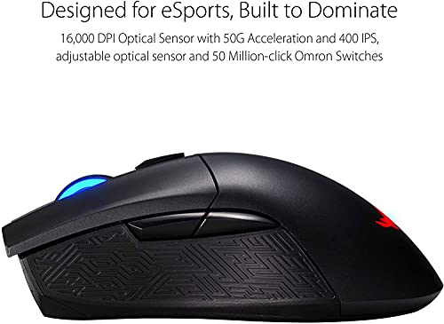 ASUS ROG Gladius II Wireless Mouse Gaming, Doppia Connettività: Wireless e Bluetooth, 16000 DPI, Design Ergonomico, Aura Sync RGB, Socket Switch Push-Fit, Switch Omron, Nero
