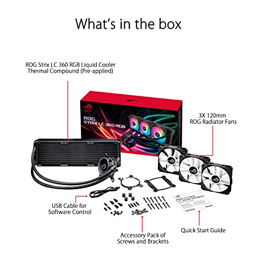 ASUS ROG STRIX LC 360 RGB Cooler CPU All-in-One ROG con Illuminazione Addressable RGB, Aura Sync, Rivestimento Pompa NCVM e Ventola del Radiatore ROG 120 mm