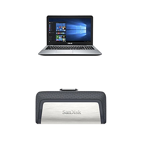 Asus VivoBook Notebook, Display 15.6" HD, Processore AMD Quad Core A10-9620P 2.5 GHz, RAM 8 GB DDR4, Scheda Grafica AMD Radeon R5 M430, SSD 128 GB, Windows 10 Home + Sandisk Ultra Dual USB Drive Type-C 64 GB, USB 3.1 Type C, Nero/Argento
