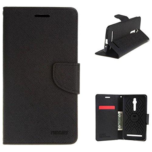 Per Asus Zenfone 2, Leathlux Semplice Premio PU Cover in ecopelle Protettivo Custodia in Portafogli con Stare Case Cover per Asus Zenfone 2 ZE550ML / Deluxe ZE551ML 5.5 " All Nero