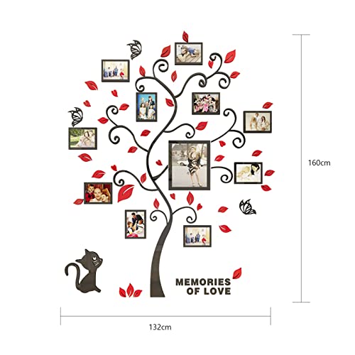 ♥ [DISEGNO]- Adesivo murale tridimensionale: foglie rosse e albero nero, cornice con adesivi ed effetto 3d lo rendono molto moderno e di alta qualità.♥[DIMENSIONE]- Dimensione di adesivo da parete: 160cm x 132cm(altezza x larghezza), dimensione di cornice della foto: 6 pollici(10cm x 15cm), 10 pollici(20,3cm x 25,4cm).