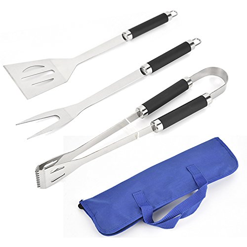 Best votato BBQ - Accessori: la più bella Heavy Duty BBQ Grill Utensil Set. asvert grill set comprende una spatola, pinze, forchetta da griglia.La confezione viene fornito anche con un classico blu borsa per il trasporto.