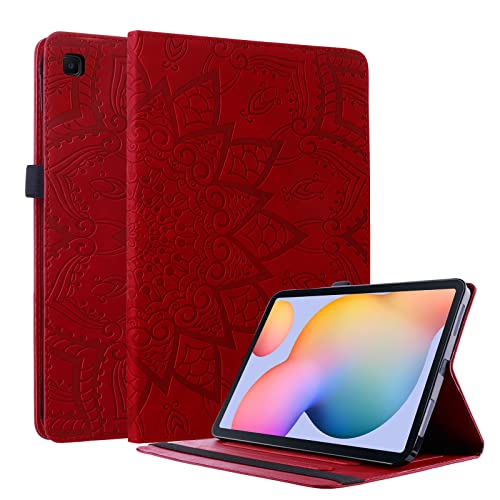 AsWant Cover Galaxy Tab S6 Lite 2020/2022 Custodia a Portafoglio Slot per Schede Flip Tablet Custodie con Porta Penna per Samsung Tab S6 Lite 10.4" SM-P610/SM-P615/P613/P619 Fiore Mandala Rosso
