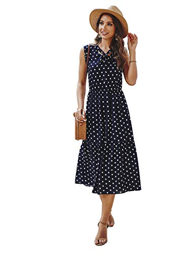 Aswinfon Donna Vestito Estivo Lungo Vestito da Spiaggia Boheme Girocollo Senza Maniche Vestiti Abiti Lunghi Eleganti (Marina, XL)