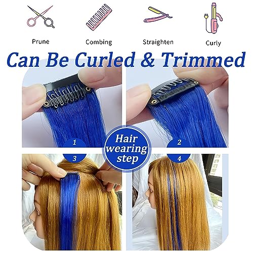 Alta Qualità: Realizzate in fibra sintetica resistente al calore, atossica, morbida, leggera e priva di grovigli. I capelli sono cuciti a mano tra le clip per un aspetto autentico che puoi ridisegnare con forbici e arricciacapelli.