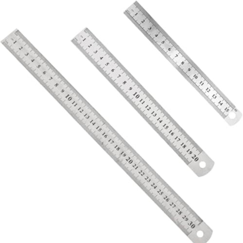 ASYKNM Set di 3 righelli in Acciaio Inox a Doppia Parete con Bordo in Acciaio Inox, Perfetti per Engineering, Lehr, e Offi. Disponibili in 3 Misure: 15 cm, 20 cm, 30 cm.