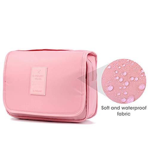 Design con gancio portatile: la borsa per il trucco è progettata con gancio superiore nero che è robusto e può essere appesa in bagno, portasciugamani o ovunque si desideri visualizzare e accedere facilmente ai tuoi oggetti organizzati. La maniglia esterna è comoda per il trasporto e lo stoccaggio.