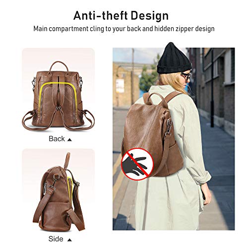 AtailorBird Zaino da Donna Antifurto Borse a Spalla Casual Zainetto Impermeabile Zaino in Pelle PU Grande Capacità Zaino da Scuola Zaino da Viaggio - Marrone