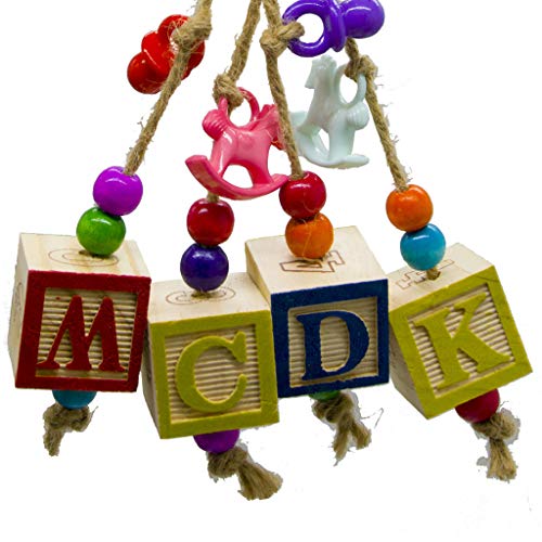 ATATMOUNT Blocchi per Uccelli Giocattoli da Masticare Grandi pappagalli Giocattoli educativi Gabbia in Legno Giocattolo Appeso per Ara Grigi africani Parrocchetti Cockatiels Conures Cacatua Medio