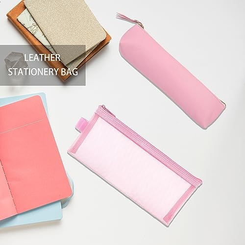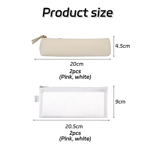 ATBUSS Set di 2 astucci in pelle con 2 sacchetti per cancelleria, astuccio portatile, astuccio sottile per cancelleria, per ragazzi, ragazze (rosa, bianco), rosa, bianco, 20 * 4,5 * 3,5 cm, CARRIER