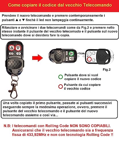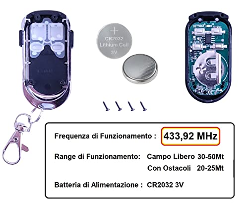 ATEC - Telcomando Universale a Frequenza Fissa 433,92 MHz con 4 Pulsanti. NON Idoneo per Rolling Code