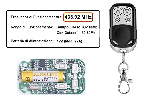 * Questo telecomando è in grado di lavorare esclusivamente a frequenza fissa di 433,92 MHz, il che lo rende utile a sostituire o copiare tutti quei radiocomandi utilizzati per esempio sui Cancelli, sulle Basculanti, per gli Allarmi e qualunque altro dispositivo che lavori a questa precisa frequenza e che non abbia un "Rolling Code" *