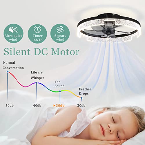 【6 velocità e funzione di temporizzazione APP】: questa plafoniera con ventilatore è dotata di un motore in rame CC di alta qualità che fornisce un flusso d'aria potente.La ventola ha 1-6 velocità del vento. vento naturale, 5-6 marce forte vento fresco.Tempismo gratuito APP, nessun rumore!Ti porta aria fresca e vento tranquillo per dormire bene la notte.