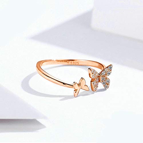 Ategazza Anello Aperto da Donna Falfalla Argento 925 con Zirconia Regolabile ga7 (Oro Rosa)