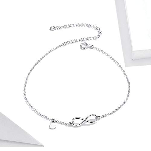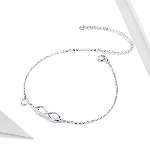 Ategazza Cavigliera Argento Infiniti e Cuore da Donna Regalo Cavigliera 19-25cm egb32
