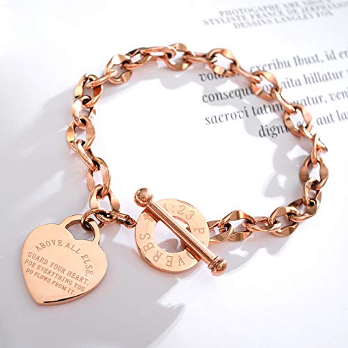 ATEIELLI Bracciale Cuore da Donna Acciaio Inossidabile Oro Rosa Placcato con Zirconia con Chiusura a T B1547 (157Lettera)