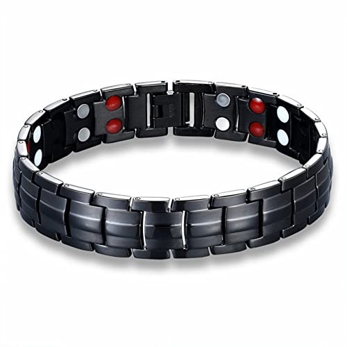 ATEIELLI Bracciale Magnatica per Terapia da Uomo Bracciale Acciaio JWB326 (Nero-Largo)