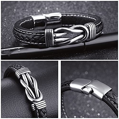 ATEIELLI Bracciale Uomo PU pelle Acciaio al titanio 20cm Larghezza1.2cm B314