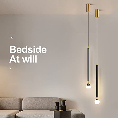 ATELANGE Plafoniera A Sospensione A Tubo Lungo in Alluminio Creativo A LED 5w con Lampada A Sospensione in Acrilico Lampadario A Soffitto Cilindrico Dorato per Sala da Pranzo (Lunghezza 23,6'')