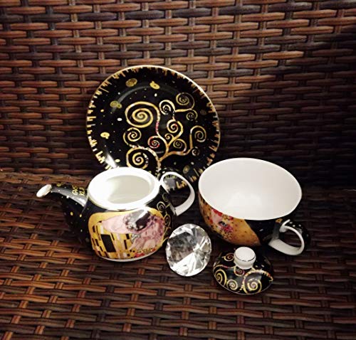 Atelier Harmony Gustav Klimt Tee for One Kuss - Tazza in porcellana con albero della vita, con confezione regalo, colore: Nero/Oro