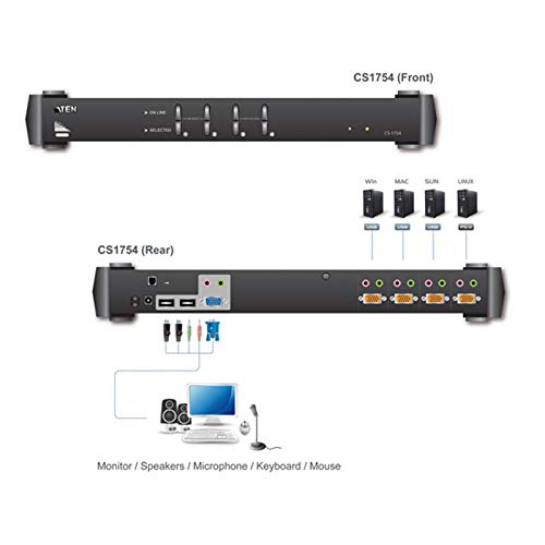 Aten 4 port USB KVM, Support PS/2, USB, SUN Server con Audio, CS1754Q9-AT-G