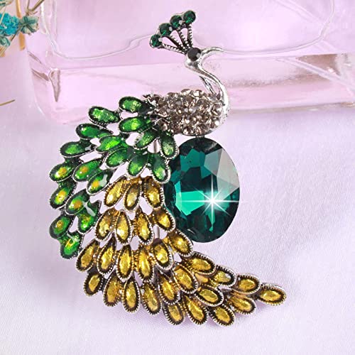 Atentuyi Spilla in argento con strass, spille di cristallo verde, per donne e ragazze, regalo di moda (pavone giallo)