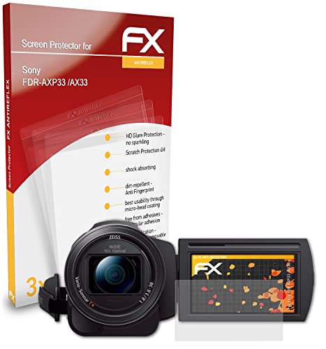 AtFoliX Pellicola Protettiva compatibile con Sony FDR-AXP33 /AX33 Protezione Pellicola dello Schermo, antiriflesso e ammortizzante FX Pellicola Proteggi (3X)