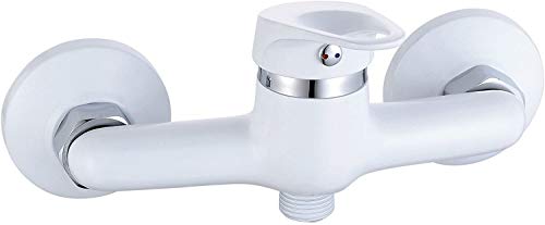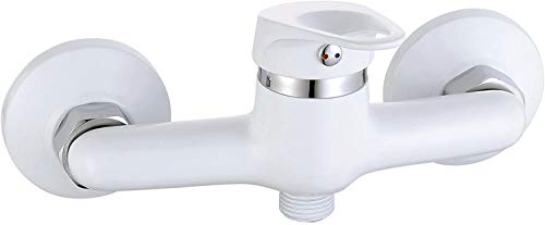 ATHEN - Rubinetto per doccia, miscelatore monocomando, attacco tubo flessibile standard, miscelatore in bianco cromato