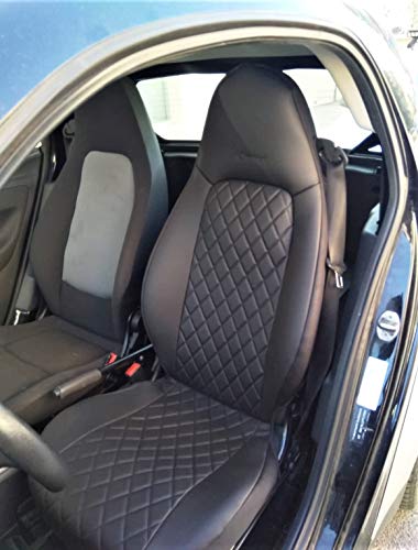 Top Car Athens || Rhombus | 2 coprisedili per auto | in ecopelle con materiale sintetico | 100% su misura, compatibile con Smart | Coprisedili foderati | Colori Nero (Smart ForTwo (450) 1998-2007)