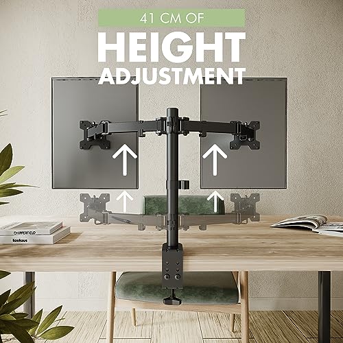 ATHLETIC Supporto Doppio Monitor per Schermo LED LCD da 13 a 27 Pollici, Ergonomica Inclinazione e Rotazione Braccio Monitor Scrivania con Morsetto, Dimensioni VESA: 75x75-100x100 mm