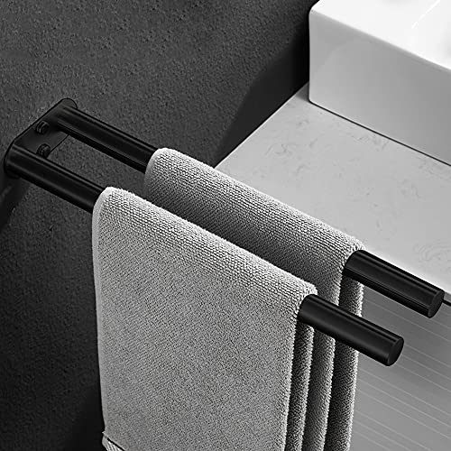 Athyior Porta Asciugamani Bagno da Parete Acciaio Inox - 40 cm Bagno Porta Salviette nero opaco per Bagno Lavello Gabinetto Cucina (doppio braccio)