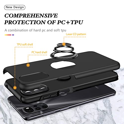 ATISIJIE Cover per Motorola Moto G22 Custodia con [Invisibile] supporto ad anello, Custodia Armour Metallo Magnetica Supporto Silicone TPU Bumper Antiurto per Motorola Moto G22 Nero