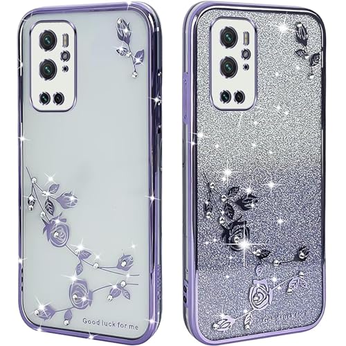 ATISIJIE Cover per ONEPLUS 9 Pro 5G, Custodia AntiGraffio Morbido Silicone Finitura lucida con diamanti Adatto a ragazze e donne-Viola