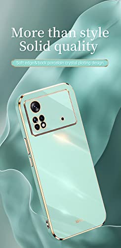 ATISIJIE Cover per Xiaomi Poco M4 Pro 4G Case, Custodia in Morbida Silicone TPU Bordo Dorato della Placcatura Anti-Graffio Antiurto Protettiva Shell Bumper per Donne e Ragazze Verde menta