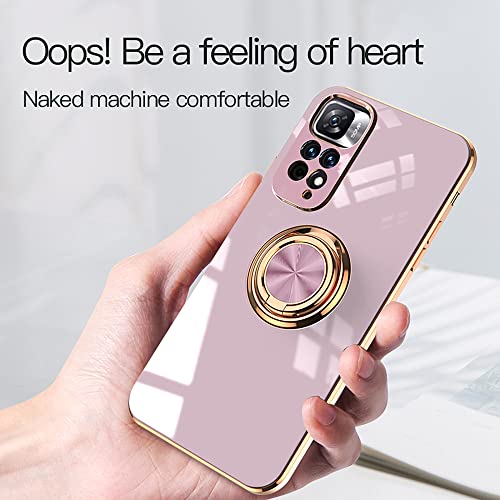 ATISIJIE Cover per Xiaomi Redmi Note 11 4G / Redmi Note 11S 4G Custodia con 2 Pellicola Protettiva in Vetro Temperato,360° Girevole Supporto Magnetico per Auto,Ultrasottile da Donna Guscio Rosa chiaro