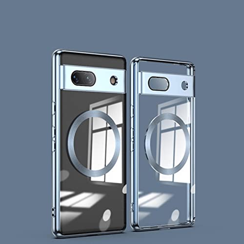 ATISIJIE Custodia per Google Pixel 7a con protezione della lente della fotocamera, trasparente magnetica con custodia MagSafe [non ingiallimento] TPU sottile e morbido silicone antiurto blu
