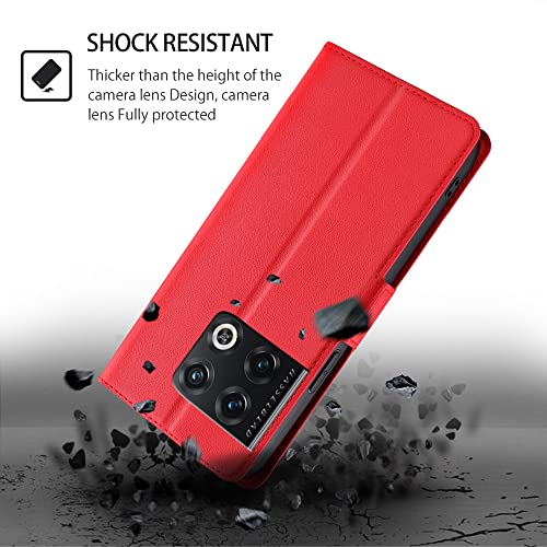 ATISIJIE Custodia per OnePlus 10 Pro 5G Cover Originale, Antiurto Portafoglio Interno TPU [Magnetica] [Carta Fessura] Custodie in Pelle Flip Cover per OnePlus 10 Pro 5G Case Rosso