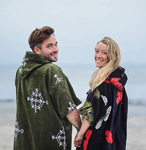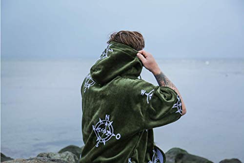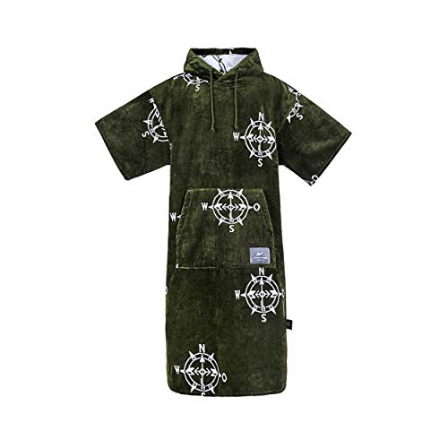 Atlantic Shore | Poncho da surf ☆ Accappatoio in cotone di alta qualità ➤ Special Compass Edition ➤ Oliva/White ➤ Long