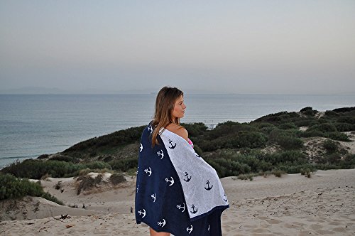 Atlantic Shore | Surf Fashion ➤ Telo mare, asciugamano da spiaggia, in cotone di alta qualità, 160 x 90 cm, motivo piccole ancore