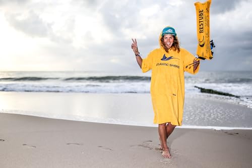 Atlantic Shore | Surf Poncho (Unisex) ➤ Accappatoio/Cotone di Alta qualità Che agevola Il cambiarsi di Abbigliamento ➤ Giallo ➤ Long